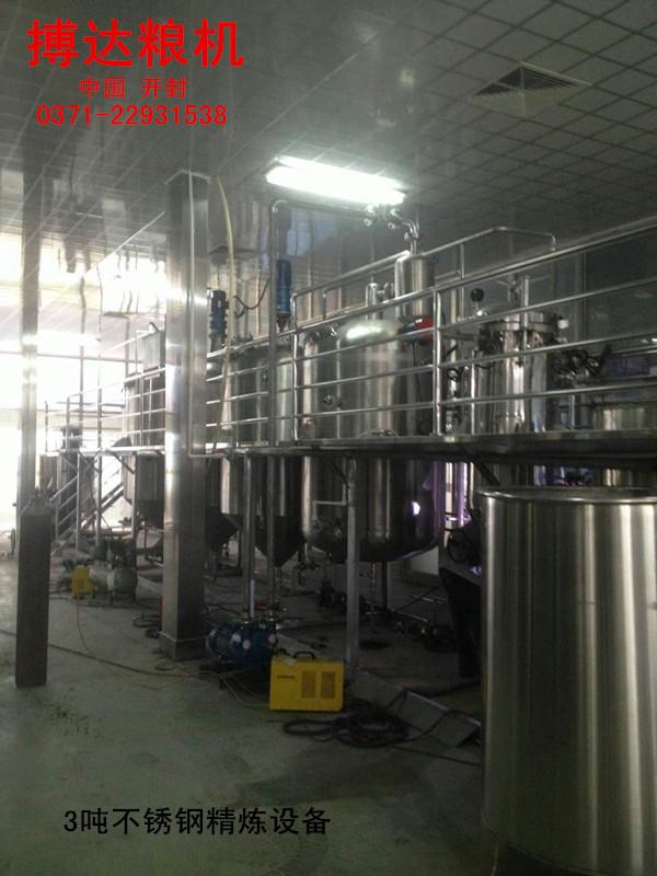 大豆油精煉設(shè)備熱脫皮工藝,今年來,大豆油熱脫皮工藝得到較快的發(fā)展和推廣,大豆油熱脫皮紅衣的形式很多,經(jīng)過處理后的大豆直接進入流化床加熱干燥,使表面溫度達到75-92攝氏度,大豆所含水分9%左右,這主要是為了加熱大豆皮和表層,皮松脆易于裂開。然后由輥破碎機將大豆對半破開分為兩瓣,并落入撞擊機利用撞擊機作用使豆皮從仁粒上松脫下來,經(jīng)吸風分離器進行脫皮分離,經(jīng)部分脫皮的半粒狀大豆再經(jīng)過齒輥破碎機破碎成符合軋坯要求的粒度,而后又經(jīng)撞擊機和多級撞擊和多級吸風分離器進行第二次脫皮分離,分離出的豆仁至下道工序,豆皮收集后送至豆皮倉庫,該工藝與冷脫皮工藝相比周期短,短時間的高溫處理減少了大豆油中油脂的變質(zhì)和蛋白質(zhì)的變性。熱大豆破碎后的粉末度減小,這將更有利于皮仁的分離,減少皮中的含仁量。經(jīng)脫皮后的熱豆??芍苯舆M行軋坯,或為加熱軟化后再去軋坯,這將大大降低生產(chǎn)過程中的蒸汽消耗。
