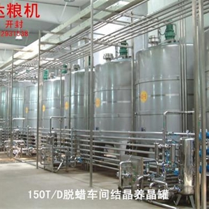 油脂脫蠟設備主要是指去除蠟脂使油品色澤鮮亮。工藝流程:結晶、養(yǎng)晶、蠟脂過濾、冷水循環(huán)等來實現的。